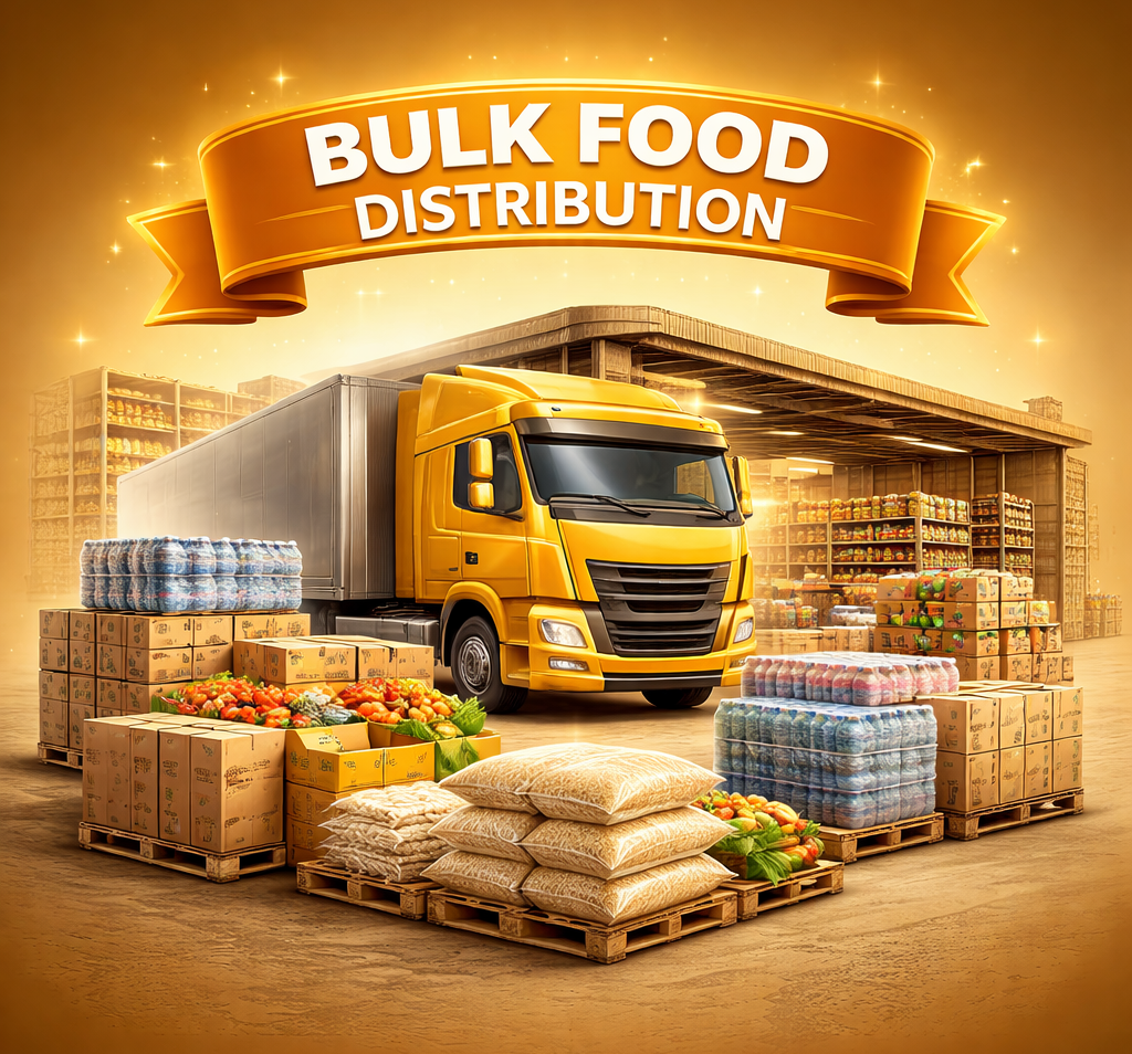 Efficient and organized distribution of packaged food products to supermarkets, stores, and commercial clients.